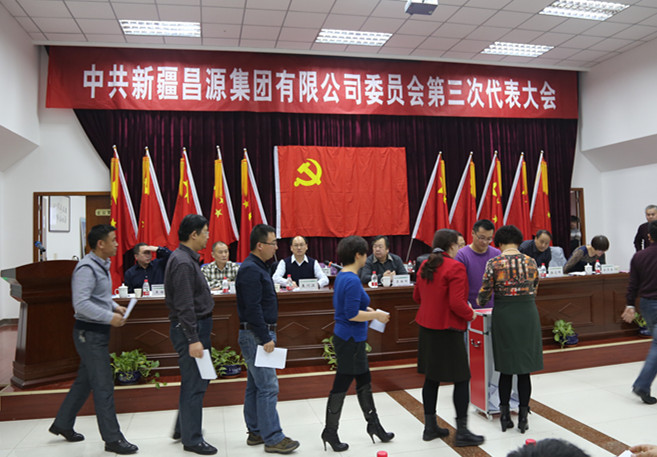中共新疆昌源集团有限公司委员会第三次代表大会于2015年12月16日在乌鲁木齐市新疆水务科学研究院顺利召开,中国水务临时党委书记李维科、中国水务党群工作主任谢军、集团公司党委委员、纪委委员、各基层党组织推选产生的出席集团公司党代会代表和推荐的列席代表参加了此次会议。