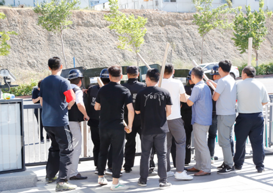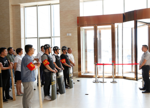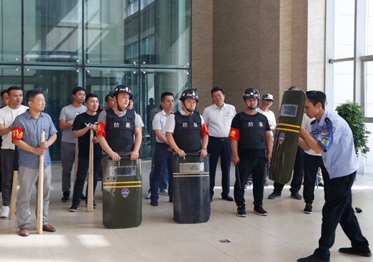 演练前,社区和警务站工作人员向大家讲解维稳安保相关知识和防暴器材使用的基本方法,集团公司领导为大家作动员讲话。