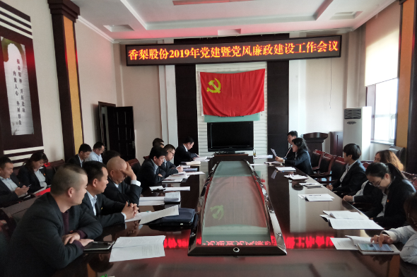 会议首先传达学习了《2019年香梨股份党建工作要点》,总体要求是:以习近平新时代中国特色特色社会主义思想为指导,全面贯彻落实党的十九大精神,坚持以党建提升为主线,以夯实基层党支部工作为基础,以政治建设、思想建设、责任延伸、制度落实、能力提升和工作推进为重点,以提升党员领导干部思想到位、行动对标为关键,以更加有力的举措和更加务实的作风,全面推进党的建设,聚焦总目标,不断推进党建工作与公司业务工作相融合,为公司生产经营发展提供政治保证。
