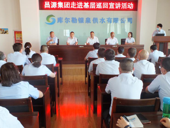 为深入贯彻落实党的十九大及十九届二中、三中、四中全会精神,加强“访惠聚”驻村工作的总结宣传、舆论引导,传导正能量,6月3日下午,集团公司宣讲团走进库尔勒银泉供水有限公司开展基层巡回宣讲活动,银泉供水公司全体党员干部职工和香梨股份公司职工代表参加此次活动。